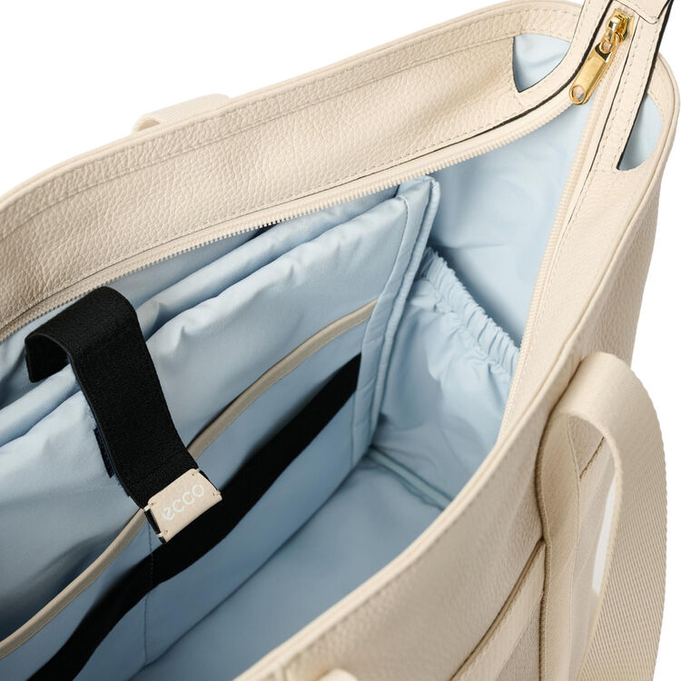 Сумка ECCO Tote — идеальный спутник тех, у кого в запасе всегда много планов на будний день или выходные. Простая и лаконичная форма, нечто среднее между шопером и роскошным женственным тоутом, позволит сочетать модель с одеждой в разных стилях, при этом имея всё необходимое под рукой. Накладной карман с верхней эластичной застёжкой рассчитан на ноутбук диагональю до 14 дюймов, планшет и ценные документы. Два кармана можно занять зарядными устройствами, картхолдером, косметикой, а фиксаторы-резинки на них использовать для ежедневника или проводов. Для бутылки, термокружки или термоса предусмотрен специальный держатель, чтобы точно ничего не пролилось. Текстильные ручки дополнены кожаными вставками, что защищает основной материал от износа и повреждений. В карман снаружи можно убрать транспортную карту, ключи или мелочь. Положение сумки фиксируется при помощи планки на задней стороне аксессуара за ручку чемодана. Модель изготовлена из водонепроницаемой зернистой кожи со слегка блестящим финишем и приятной текстурой. Подкладка внутри выполнена из влагозащитного переработанного полиэстера. Высота ручек 27 см. Высота сумки 30 см, ширина 50 см, глубина 20 см, вес 1,1 кг.