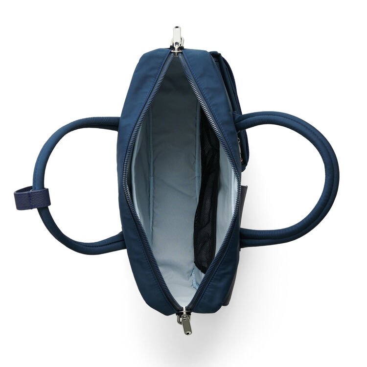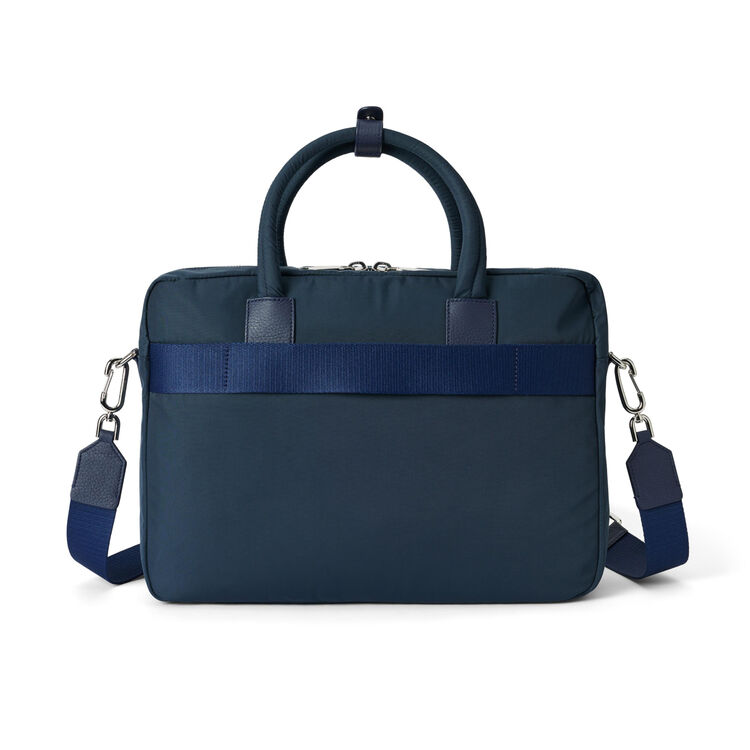 В сумке для ноутбука хватит пространства для организации всего, что необходимо для продуктивной работы. Универсальный дизайн гармонирует с повседневной и деловой одеждой. Практичные материалы: матовый текстиль эффектно сочетается с деталями из зернистой кожи — оба материала влагоустойчивы, поэтому не боятся дождя и снега. Всё в порядке: ноутбук 14" и документы за счёт специального отделения надёжно фиксируются внутри. Провода, зарядку и мышь вместе с ручками можно разместить в карманах снаружи. В офис или командировку: в рабочих поездках модель удобно крепится к ручке чемодана за специальный ремень сзади. Модель можно носить за ручки, через плечо или на плече. Размеры: длина ручки 7 см. Длина съёмного регулируемого ремня 36-59 см, ширина 4 см. Высота сумки 27,5 см, ширина 38 см, глубина 13 см, вес 0,8 кг.
