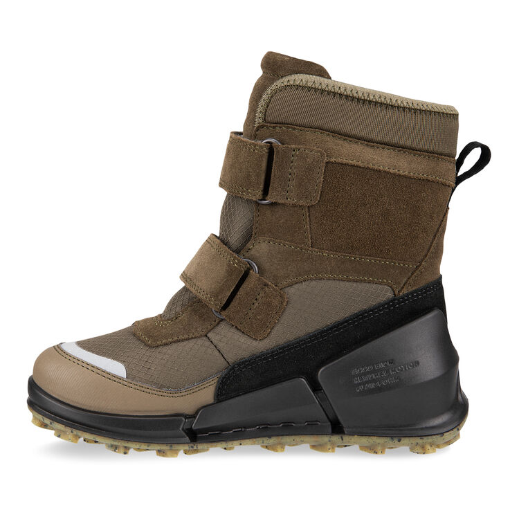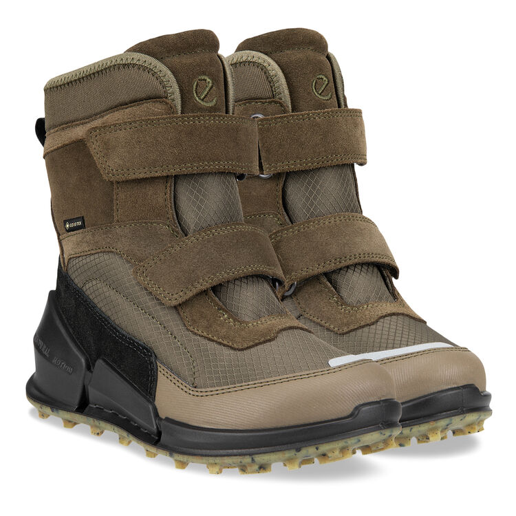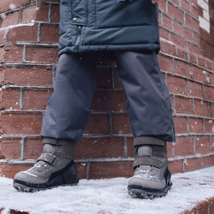 Стиль, комфорт и практичность объединены с инновационными технологиями в зимних ботинках из натуральной замши для мальчиков и девочек ECCO BIOM K2. Двухкомпонентная полиуретановая подошва с резиновым слоем устойчива на скользких поверхностях. Дополнительное пространство в передней части позволяет стопе двигаться свободно. С застежками на липучках ребенок переобуется без помощи взрослых. Светоотражающая лента на носке повышает видимость в темноте. Утепленная подкладка и съемные стельки поддерживают тепло внутри ботинок. Спортивный стиль поддерживается асимметричной подошвой, комбинацией материалов и петелькой контрастного цвета. Крупные ремешки на липучке добавляют модели трендового объема. Технология BIOM NATURAL MOTION гарантирует естественное положение и устойчивость стопы при движении. Технология ECCO FLUIDFORM создает анатомическую подошву и соединяет ее с верхом обуви без клея и швов. Мембрана GORE-TEX обеспечивает исключительную защиту от воды и эффективно отводит испарения.