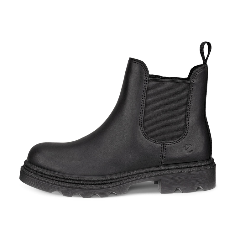 В детских челси ECCO GRAINER K зима пройдёт в тепле и с удовольствием. Модель надёжно защищает маленькие ножки от усталости, холода и непогоды. Всё благодаря влагозащитной мембране ECCO Waterproof, утеплителю из искусственной шерсти и анатомической колодке ECCO FLUIDFORM. Универсальный стиль челси подойдёт как для мальчиков, так и для девочек. Такой взрослый силуэт впишется в образ практически для любого повода, куда бы ни направился ребёнок. Элегантный облик модели создаётся за счёт долговечных и качественных материалов и классической формы обуви, прямо как у мамы с папой. Лёгкая полиуретановая подошва не утяжеляет шаг и помогает амортизировать стопу в движении благодаря анатомической форме колодки ECCO FLUIDFORM. Нижний слой подошвы из резины усиливает сцепление с поверхностью и препятствует скольжению на льду и снегу. Боковая молния позволит ребёнку одеваться самостоятельно и бережно фиксирует обувь на ноге. Верх выполнен из гладкой кожи или замши высокого качества, произведённых на собственных кожевенных заводах ECCO. Водоотталкивающая мембрана ECCO Waterproof защищает от снега, слякоти, дождя и холода. Подкладка из искусственной шерсти не деформируется со временем, согревает даже в умеренный мороз, а также поглощает излишки влаги для комфорта в течение всего дня. Фетровые стельки помогают изолировать стопу от холода, исходящего от земли.