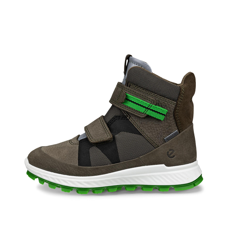 В демисезонных ботинках из натурального нубука для мальчиков и девочек ECCO EXOSTRIKE KIDS можно гулять на улице с утра до позднего вечера, не переживая о комфорте ног. Подошва из полиуретана обладает маленьким весом и обеспечивает хорошее сцепление благодаря противоскользящему резиновому покрытию. Две застежки на липучках плотно фиксируют лодыжку, не стесняя естественного движения ноги. Утепленная подкладка и съемные стельки надежно сохраняют естественное тепло. В дизайне ботинок нашли воплощение все актуальные модные тренды: комбинация фактур материалов, элементы ярких цветов, светоотражающие ленты. Спортивный стиль модели отлично сочетается и с повседневными образами. Технология ECCO FLUIDFORM формирует анатомически правильную подошву в соответствии с изгибами стопы и бесшовно присоединяет ее к верху обуви. Климатическая мембрана GORE-TEX не допускает попадания капель воды внутрь и эффективно отводит испарения от ноги.