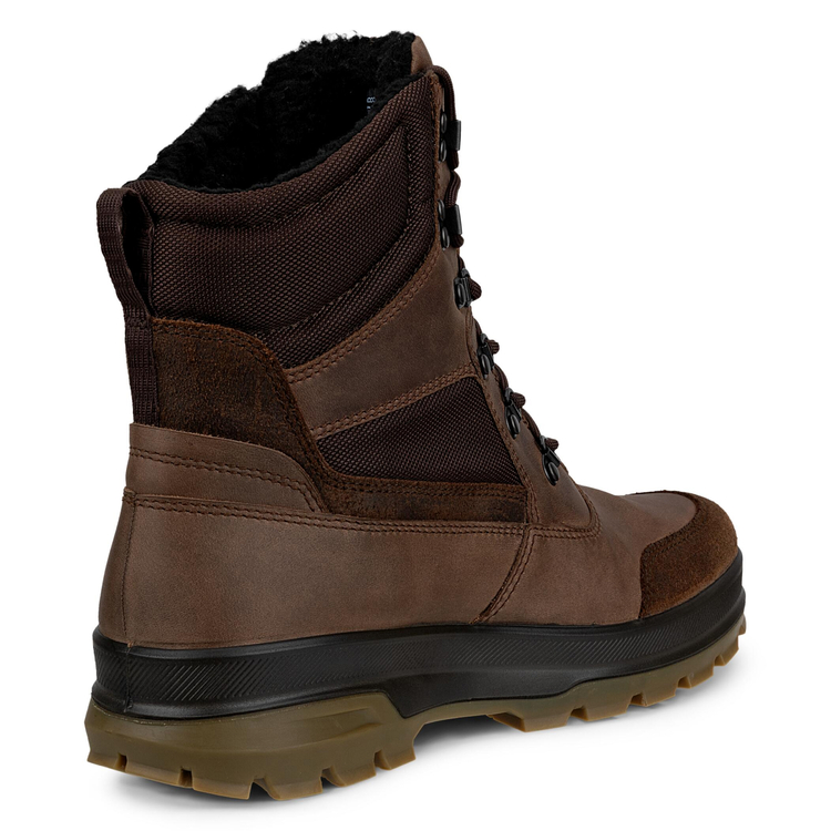 Зимние мужские ботинки из ECCO RUGGED TRACK созданы для преодоления препятствий и активного отдыха на природе. Двухкомпонентная подошва из полиуретана и латекса обладает исключительным сцеплением на скользких поверхностях, оставаясь при этом гибкой и мягкой. Усиленная текстильная шнуровка позволяет надежно зафиксировать голенище на лодыжке и избежать травм. Утепленная подкладка и съемные стельки сохраняют тепло внутри ботинок. Высокое голенище и акцентная шнуровка с металлическими петлями и люверсами напоминают армейские ботинки. Эффект многослойности и совмещение нескольких оттенков цвета создает трендовый объем модели. Технология ECCO FLUIDFORM позволяет создать гибкую подошву правильной анатомической формы и соединить ее с верхом без клея и швов. Технология ECCO RECEPTOR создает особую конструкцию с разными зонами жесткости для исключительной поддержки стопы на всех этапах шага. Климатическая мембрана ECCO WATERPROOF надежно защищает обувь от любых капризов погоды.