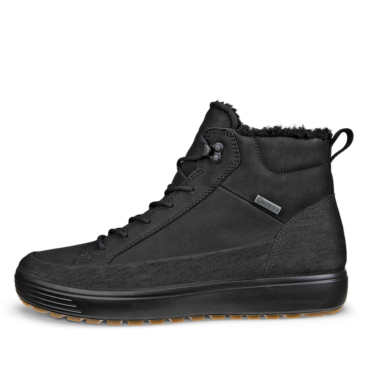 Зимние мужские кеды из натурального нубука ECCO SOFT 7 TRED M сочетают стильный дизайн, инновационные технологии и максимальную защиту от непогоды. Двухкомпонентная подошва из полиуретана и резины невероятно мягкая, легкая и гибкая, но при этом устойчивая на скользких покрытиях. Усиленная шнуровка и молния сбоку помогают подобрать оптимальную посадку кедов. Брызговик защищает верх от воды и грязи и продлевает срок службы обуви. Утепленная подкладка и съемные войлочные стельки сохранят тепло ног. Толстая подошва, металлические крючки для шнуровки и контрастные сочетания цветов придают традиционному силуэту кедов особый спортивный шик. Технология FLUIDFORM создает анатомически правильную подошву и надежно соединяет ее с верхом модели без клея и швов. Климатическая мембрана GORE-TEX защищает от воды и эффективно отводит влагу изнутри, сохраняя ноги теплыми и сухими в любой ситуации.