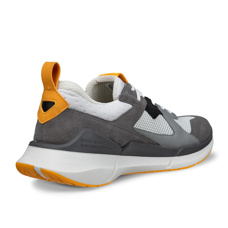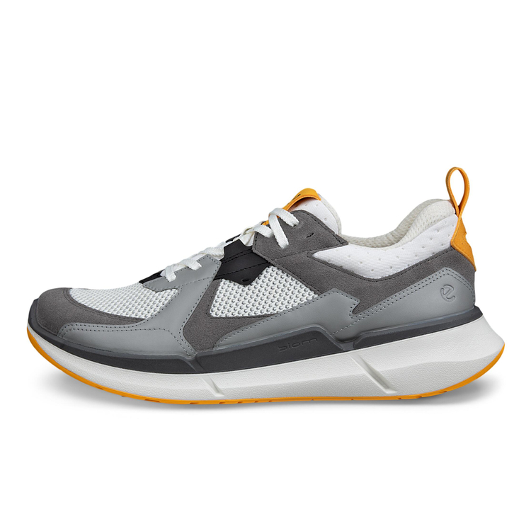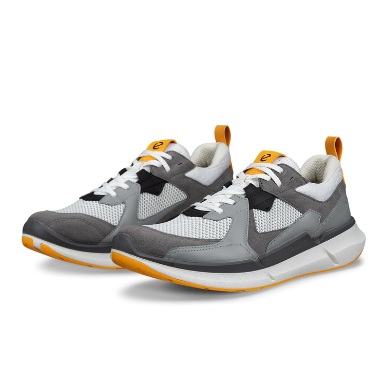 Мужские кроссовки ECCO BIOM 2.2 M не останутся незамеченными благодаря своему яркому и запоминающемуся дизайну. Актуальный и современный облик модели достигается за счёт комбинации оттенков, фактур, материалов и деталей. Контрастные цвета создают универсальный образ, такие кроссовки можно сочетать с брюками, джинсами, и даже шортами любых цветов, а самые смелые модники могут попробовать комбинировать с трендовыми брючными костюмами. Подошва модели состоит из трёх слоёв: верхний слой из полиуретана, сверхлёгкая основная часть из пеноматериала и нижний слой с резиновым протектором. Верхний слой за счёт своих свойств поддерживает стопу и амортизирует каждый шаг при помощи технологий ECCO FLUIDFORM и BIOM NATURAL MOTION. Инновационный пеноматериал ECCO LYTR не утяжеляет шаг за счёт небольшого веса, усиливает отскок и защищает стопу от ударов из-за его упругости. Резиновые вставки протектора улучшают устойчивость и контакт с поверхностью, а также защищают мягкий пеноматериал от повреждений. Основной материал верха кроссовок выполнен из комбинации натуральной кожи, текстиля, замши и премиального нубука. Подкладка и верх стельки выполнены из текстиля, который обеспечивает мягкость и комфорт в движении, а также воссоздают комфортный микроклимат на весь день. Технология ECCO FLUIDFORM создаёт анатомически правильную колодку, которая поддерживает каждый шаг и повторяет естественные изгибы стопы. При помощи литьевого метода подошва надёжно крепится к верху без клея и швов. Уникальная технология BIOM NATURAL MOTION вдохновлена естественным движением стопы босиком. С помощью особой конструкции, которая бережно фиксирует среднюю часть стопы, а также дополнительно амортизирует область пятки, мышцы ноги и связки включаются в движение, как если бы вы двигались без обуви.