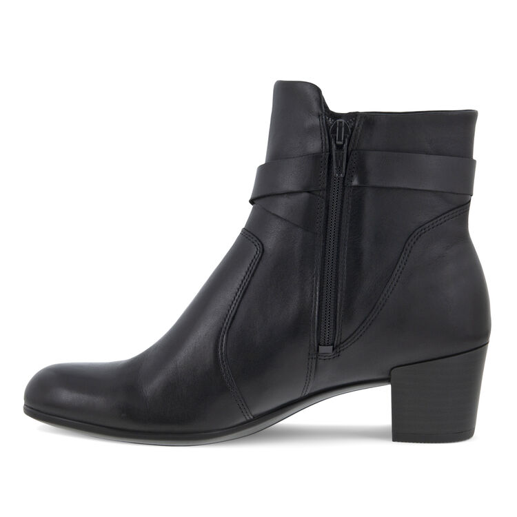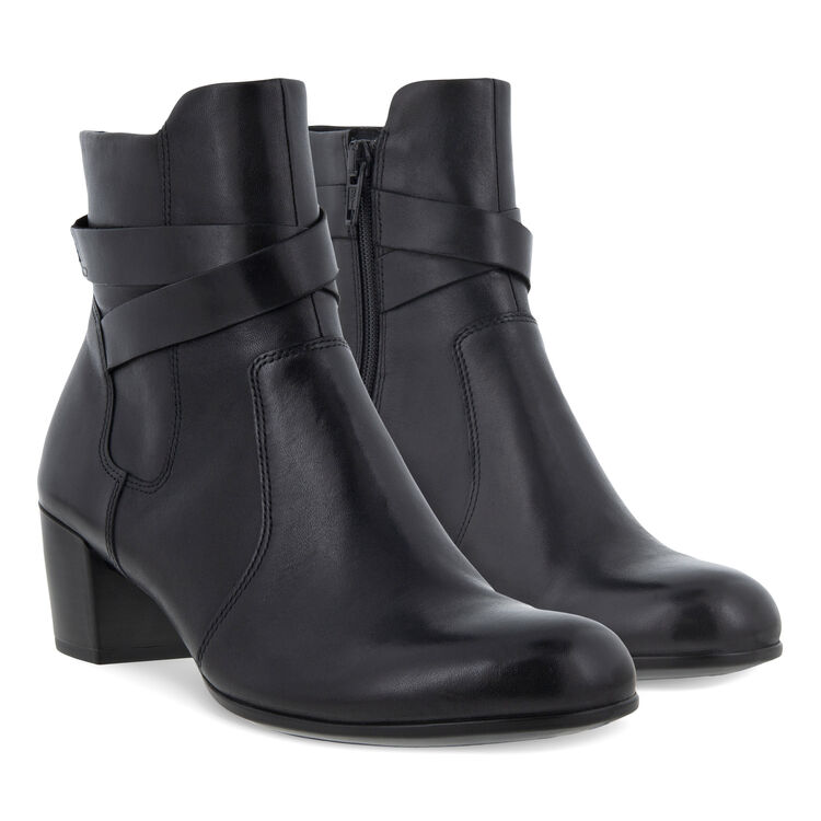 Женские демисезонные ботильоны из натуральной кожи ECCO SHAPE M 35 идеальны для города: легкие, стильные и надежные, они помогут всегда выглядеть идеально и двигаться с комфортом до позднего вечера. Легкая и тонкая подошва из полиуретана дополнена устойчивым каблуком 35 мм. Удобная молния сбоку в цвет верха позволяет легко переобуваться одним движением. Текстильная подкладка и стельки впитывают излишки влаги, сохраняя комфорт в течение дня. Слегка вытянутый закругленный носок модели и оригинальная декоративная строчка создают обтекаемый силуэт. Две пересекающиеся кожаные ленты на щиколотке делают весь образ более игривым для особого настроения даже в пасмурный день. Базовый цвет обуви идеально дополнит любой гардероб. Технология бренда ECCO FLUIDFORM позволяет создать уникальную анатомическую подошву, полностью повторяющую изгибы стопы, для исключительного комфорта и полной свободы движения. Особую упругость и легкость шагу придает технология ECCO COMFORT SHANK.
