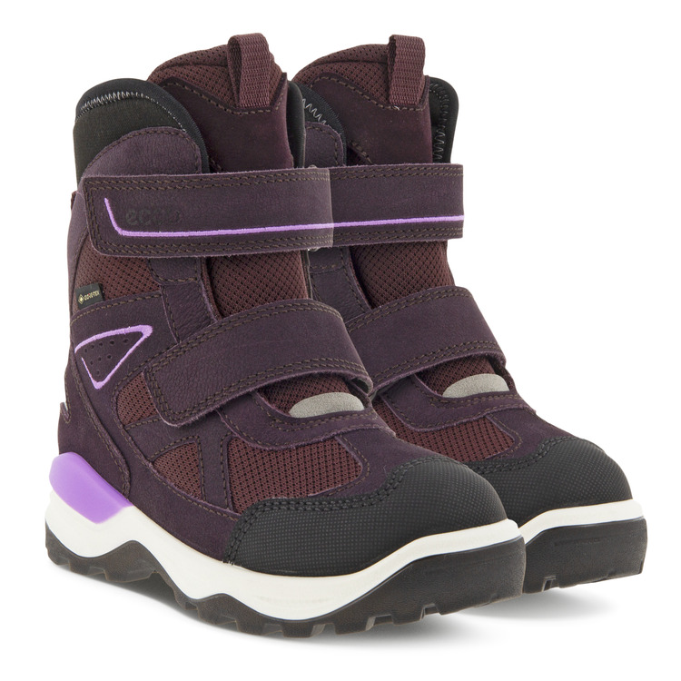 Зимние ботинки из натурального нубука для мальчиков и девочек ECCO SNOW MOUNTAIN идеальны для активных игр на улице и занятий спортом. Подошва из легкого и гибкого полиуретана усилена нижним слоем из долговечного термополиуретана для устойчивости обуви на снегу или льду. Два ремешка на липучках аккуратно фиксируют ботинки, не стесняя естественного движения стопы. Утепленная подкладка и съемные стельки с покрытием из фольги хорошо сохраняют естественное тепло ног в сильный мороз. Модель выглядит по-взрослому стильно благодаря сочетанию насыщенных цветов, разной фактуры материалов верха и акцентных деталей отделки. Многослойность, вставки из текстиля и микроперфорация делают силуэт более объемным. Уникальная технология ECCO FLUIDFORM создает гибкую подошву правильной анатомической формы и надежно соединяет ее с верхом без клея и швов. Климатическая мембрана GORE-TEX делает верх водонепроницаемым, прочным и дышащим, защищая ноги от влаги даже в дождь и снегопад.