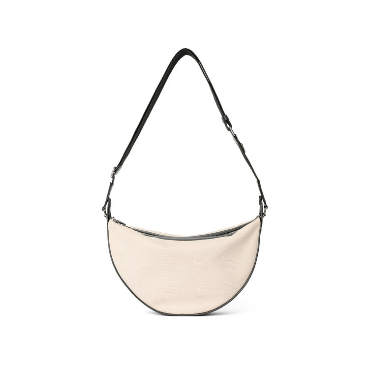 Удачная форма сумки хобо ECCO Fortune Bag, напоминающая банан, полумесяц и печенье с предсказанием легко уместит все важные мелочи для насыщенного дня. Трендовая комбинация водоотталкивающей канвы бежевого оттенка с сероватым подтоном и натуральной кожи привлечёт внимание всех вокруг. В основное отделение без подкладки можно положить телефон, небольшой блокнот, карты и кошелёк, помаду, салфетки и документы. Дополнительный кошелёк крепится к карабину спрячет самые ценные вещи. Во внешний кожаный кармашек можно спрятать транспортную карту, чтобы она была под рукой. Ремень продолжает колор-блок дизайн сумки и регулируется по размеру, чтобы носить аксессуар кросс-боди, на плече или в руке. Добавьте индивидуальности модели, прикрепив к D-образному кольцу модный обвес в вашем стиле. Больше никаких переживаний за содержимое сумки переменчивой весной: влагозащитная хлопковая канва не позволит дождю проникнуть внутрь. Отделка из натуральной кожи создаёт красивый контраст с основой верха и защищает модель от повреждений и износа. Фурнитура высокого качества не содержит никеля, который вызывает контактную аллергию. Длина регулируемого ремешка 20-32 см, ширина ремешка 4 см. Высота сумки 24 см, ширина 39 см, глубина 6,5 см, вес 0,47 кг