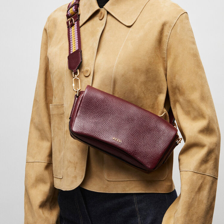 В сумке кросс-боди ECCO Pinch Bag базовые и давно полюбившиеся детали переплетаются с трендовыми и обновлёнными: знаковая форма с изящным изгибом в основании дополняется модным в этом сезоне винным оттенком, а новая структура модели без каркаса создаёт более мягкий образ. Оптимальное сочетание размера, количества отделений и кроя! Главное отделение надёжно защищает клапан на магнитах, а дополнительные карманы позволят организовать пространство. Храни документы, банковские карты и ключи в дополнительных внутренних кармашках, а во внешнем кармане сзади — транспортную карту, чтобы она всегда была под рукой. Регулируемый плетёный ремешок шириной 4 см из текстиля с деталями из кожи можно снять и трансформировать модель в клатч, либо настроить его и носить сумку на плече или кросс-боди. D-образное кольцо на ремешке позволит дополнить сумку дополнительными аксессуарами — ключницей, кошельком или чехлом для наушников. Сумку не захочется выпускать из рук благодаря секретному ремешку в основании, за который её так удобно держать. Верх модели и детали ремешка изготовлены из гладкой кожи ECCO Aerolyn с особым фактурным рисунком и «влажным» финишем, выделанной на собственных кожевенных производствах ECCO. Такой материал не содержит вредных металлов и хрома и подходит для последующей переработки. Основное отделение и карман в клапане дополнены подкладкой из переработанного водоотталкивающего текстиля, а карман на молнии имеет подкладку из кожи. Длина регулируемого ремешка 40-64 см, ширина ремешка 4 см. Высота сумки 12 см, ширина 24 см, глубина 8 см, вес 0,46 кг.