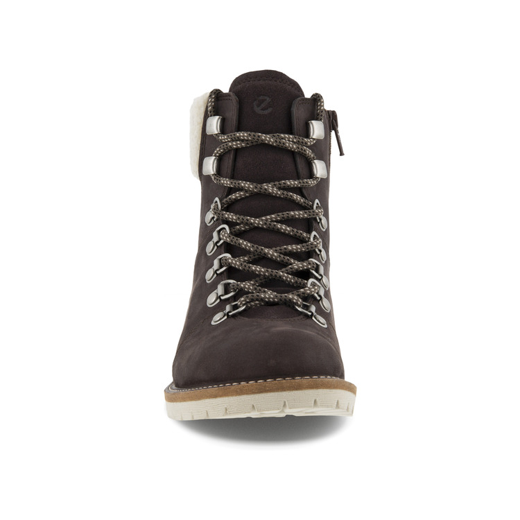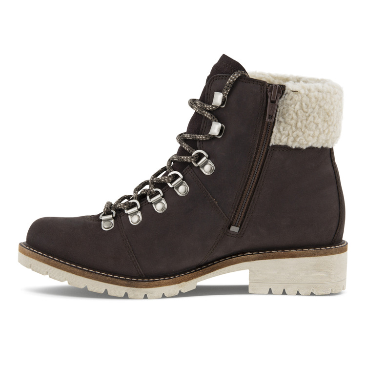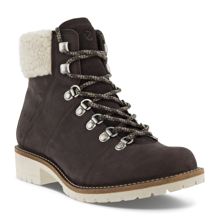Демисезонные женские ботинки из промасленного нубука ECCO ELAINA справятся с любой непогодой. Уютная подкладка с утеплителем поддержит тепло ног, а специальная пропитка верха защитит от промокания. Подошва из полиуретана с небольшим каблуком обладает низким весом и исключительной гибкостью, оставаясь стабильной на скользких и влажных покрытиях. Текстильная шнуровка надежно фиксирует ботинки на ноге, позволяя подобрать оптимальную степень прилегания. Утепленная меховая подкладка и стельки из мягкого текстиля впитывают лишнюю влагу и поддерживают тепло внутри ботинок. Сочетание материалов разной фактуры придает силуэту модели трендовый объем. Контрастная шнуровка с крупными металлическими крючками делает образ более стильным и современным. Технология ECCO FLUIDFORM создает гибкую подошву правильной анатомической формы и надежно соединяет ее с верхом без клея и швов. Инновационная пропитка ECCO HYDROMAX делает обувь непромокаемой до 10 часов, сохраняя верх мягким и дышащим.