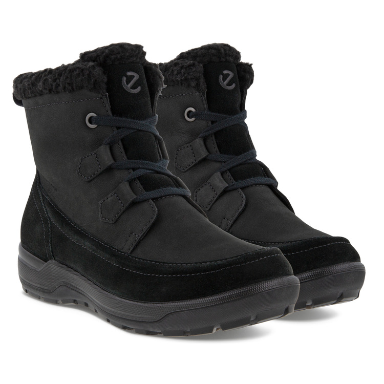 В зимних женских ботинках из натурального нубука ECCO TRACE LITE легко чувствовать себя комфортно и уверенно даже в сильный холод. Двухкомпонентная подошва из полиуретана и резины сгибается вместе со стопой и надежно удерживает обувь на влажных и скользких поверхностях. Текстильной шнуровкой легко отрегулировать посадку, а удобная петелька на заднике позволяет быстро переобуваться. Утепленная подкладка сохранит ноги в комфорте в холод, а съемные стельки с утолщением в зоне пятки обеспечат дополнительную амортизацию. Изящный силуэт ботинок декорирован замшей в тон верху и аккуратными деталями в зоне шнуровки. Сочетание фактур создает дополнительный объем, поэтому модель смотрится современно и стильно. Технология ECCO FLUIDFORM создает уникальную подошву, в точности повторяющую изгибы стопы, для максимального комфорта и амортизации. Технология ECCO RECEPTOR поддерживает стопу на всех этапах шага. Климатическая мембрана ECCO WATERPROOF надежно защищает ноги от ветра и влаги.
