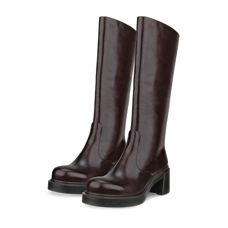 Дерзкие сапоги из гладкой кожи помогут выразить индивидуальность и заявить о себе. Стопа плавно перекатывается благодаря устойчивому каблуку и анатомической колодке. Дизайнерский крой: дизайнер пары Наташа Рамсей-Леви креативно обыгрывает контрастные смелость и женственность. Широкое голенище и массивный каблук делают образ особенным. Комфорт в деталях: сапоги-трубы легко надеваются без молнии одним движением. Широкий каблук 45 мм подчёркивает ноги и сохраняет лёгкость шага. Без усталости: подошва ECCO FLUIDFORM держит стопу в стабильном и естественном положении, чтобы придать уверенности походке. Качество материалов: за прочной кожей легко ухаживать, а внутренняя отделка создаёт гармоничный микроклимат.